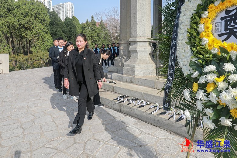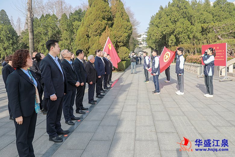 清明節即将來臨之際,3月29日上午,華盛江泉教育集團黨總支與“雙報到”聯系點沈泉莊社區聯合行動,共同前往臨沂市華東革命烈士陵園,開展“清明時節祭先烈,緬懷忠魂砺初心”主題教育。此次活動由華盛江泉集團黨委書記、總經理高洪路親自指導,沈泉莊黨委書記、華盛江泉集團常務副總經理、财務總監張毅,華盛江泉教育集團黨總支書記、董事長汪會昌,以及教育集團黨總支成員、黨員代表、團員代表、少先隊員代表、“雙報到”社區人員等共同參與。